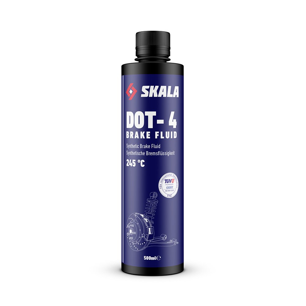 Skala Fren Hidroliği DOT-4, buhar ve nem emilimine karşı koruyan özel malzemeler içerir. Minimum 160°C ıslak ve 245°C kuru kaynama noktasına sahiptir.
